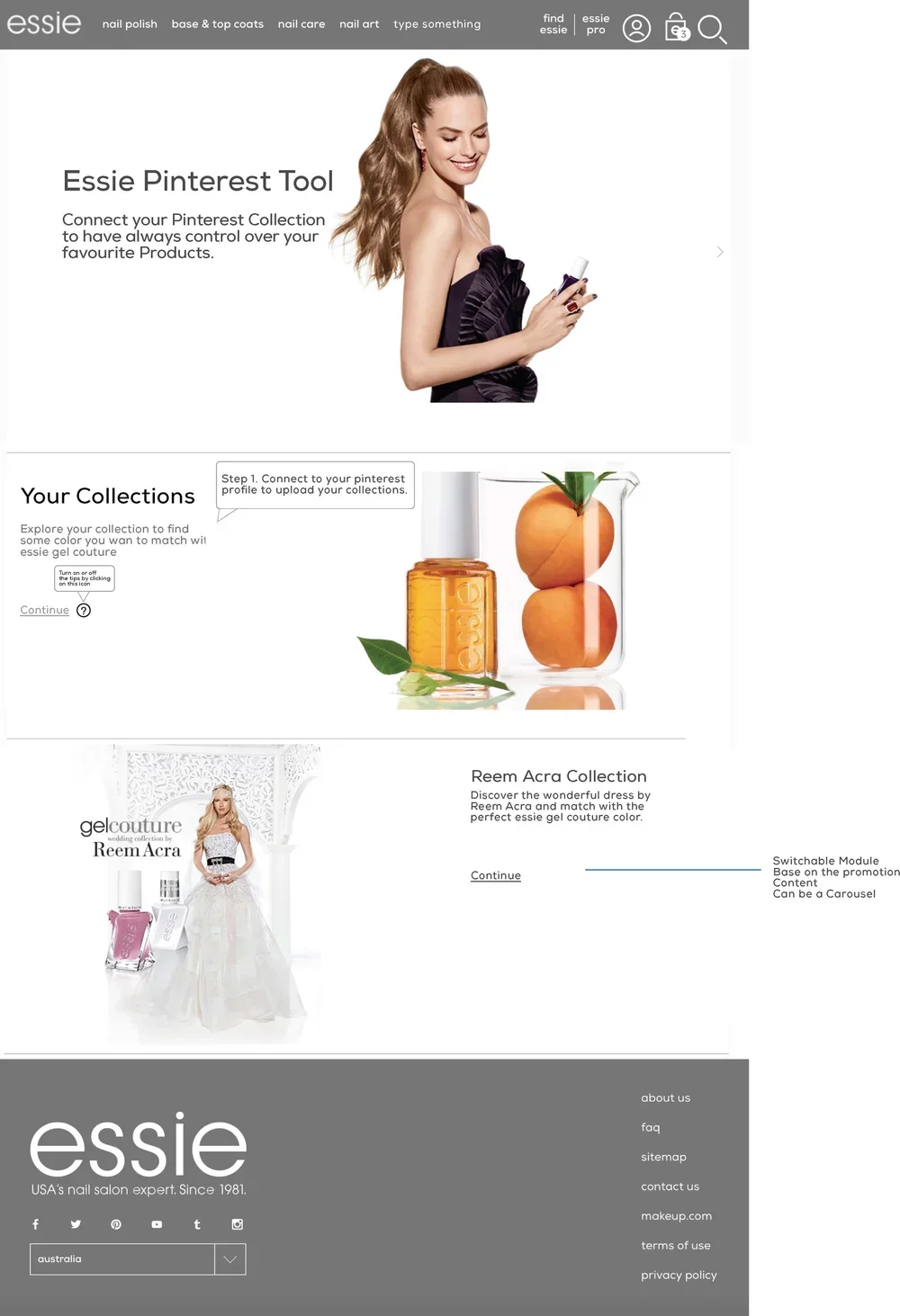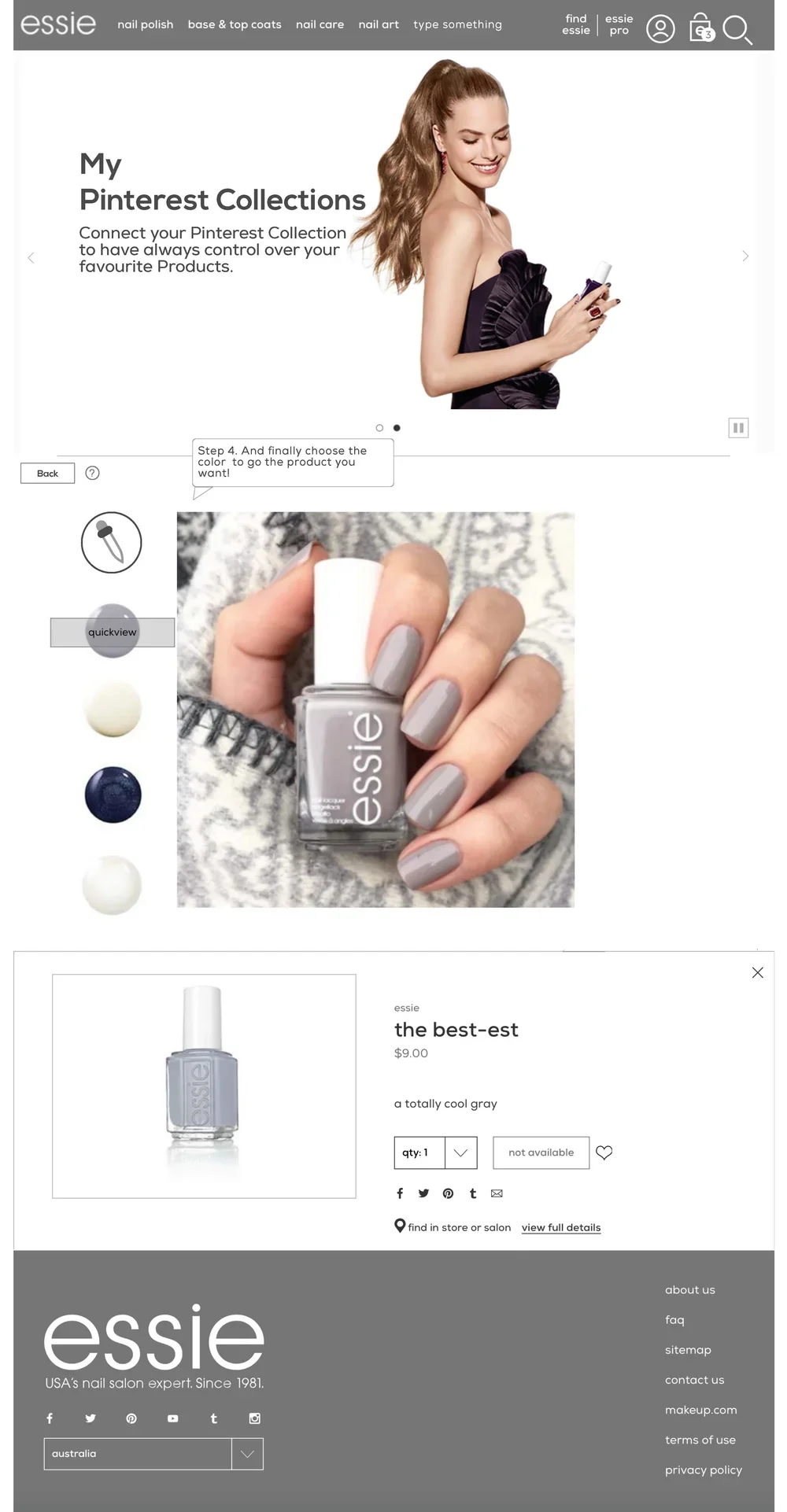 Essie users were finding nail inspiration on Pinterest but lacked a direct way to translate those images into exact product matches. This created a "social-to-store" gap where high-intent inspiration was lost because the manual search for specific shades was too difficult. Additionally, the site needed a more dynamic way to feature seasonal collections alongside these user-generated inspirations.