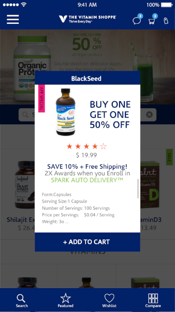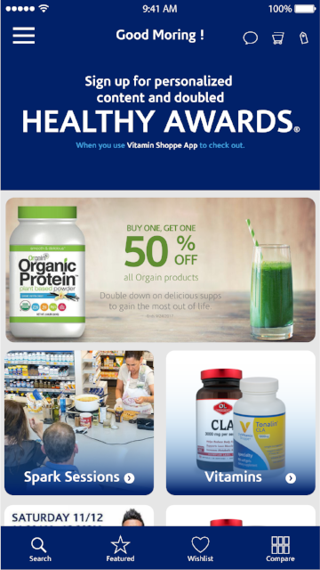 1st Iteration to create a mobile app for Vitamin shoppe.